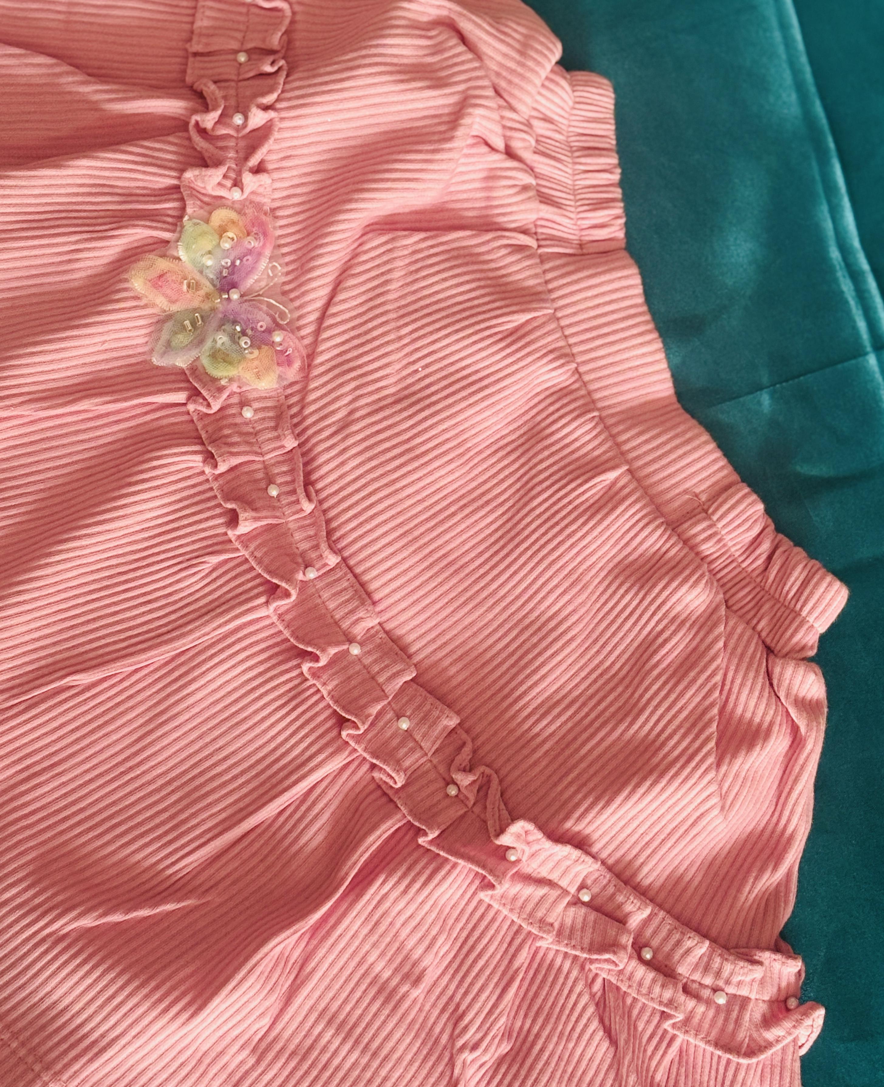 Colour : Printed white top & Baby pink midi